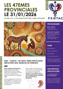 Le 31 janvier 2026 à Paris 47ème édition de notre journée de travail annuelle nommée » les Provinciales « . Cet évènement est ouvert a toutes personnes intéressées par les thérapies avec le cheval, les poneys ou l’âne. Que vous soyez thérapeutes avec le cheval, équitherapeutes, stagiaires de tous organismes de