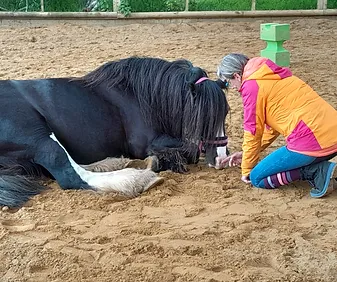 Et non pas « PAR » car ce n’est pas le cheval qui soigne, ou « SUR », car l’objectif n’est pas forcément la monte.